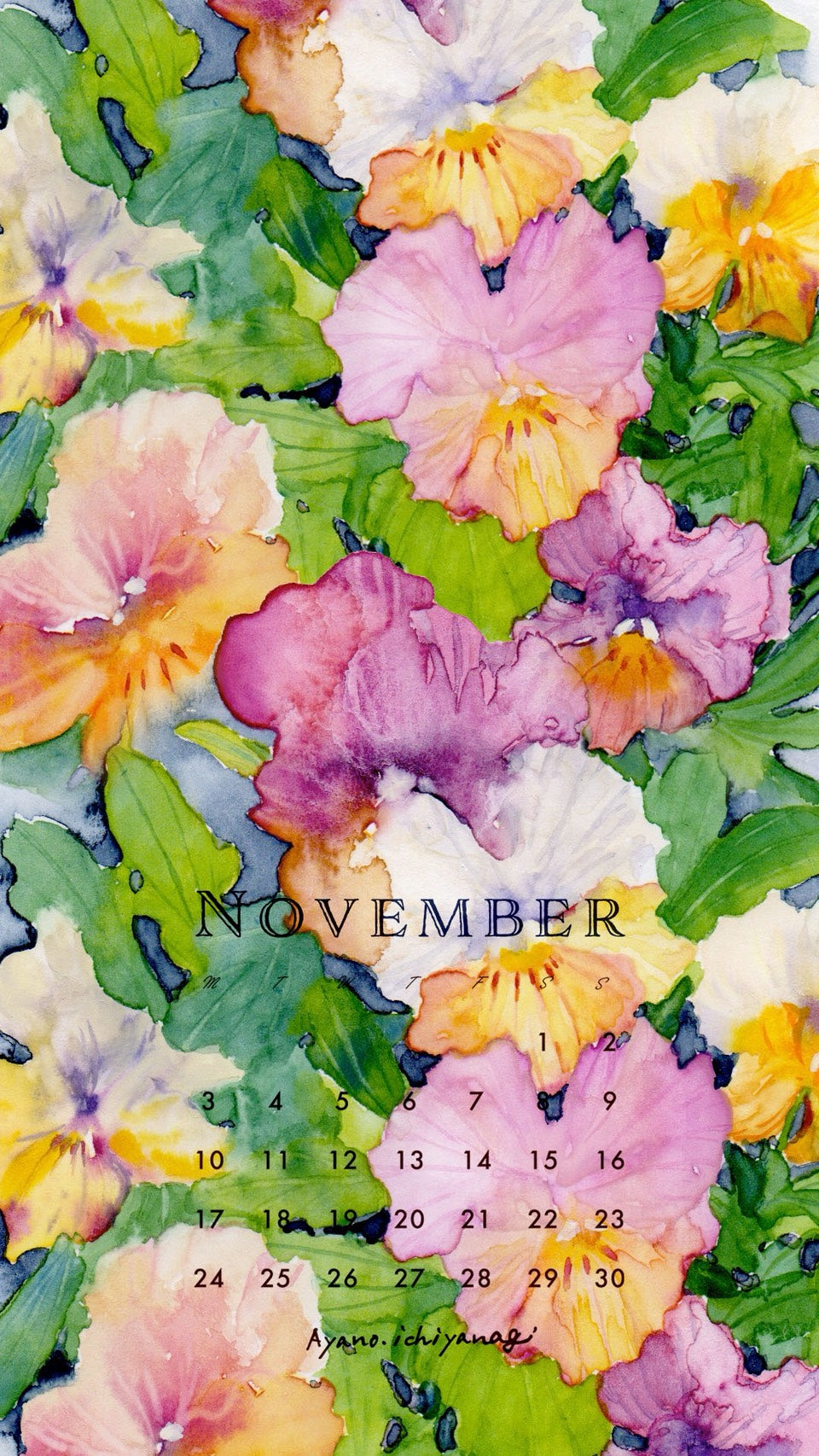 [ 2025年11月/スマホ壁紙:ビオラ (絵描き:Ayano Ichiyanagi / 一柳綾乃)